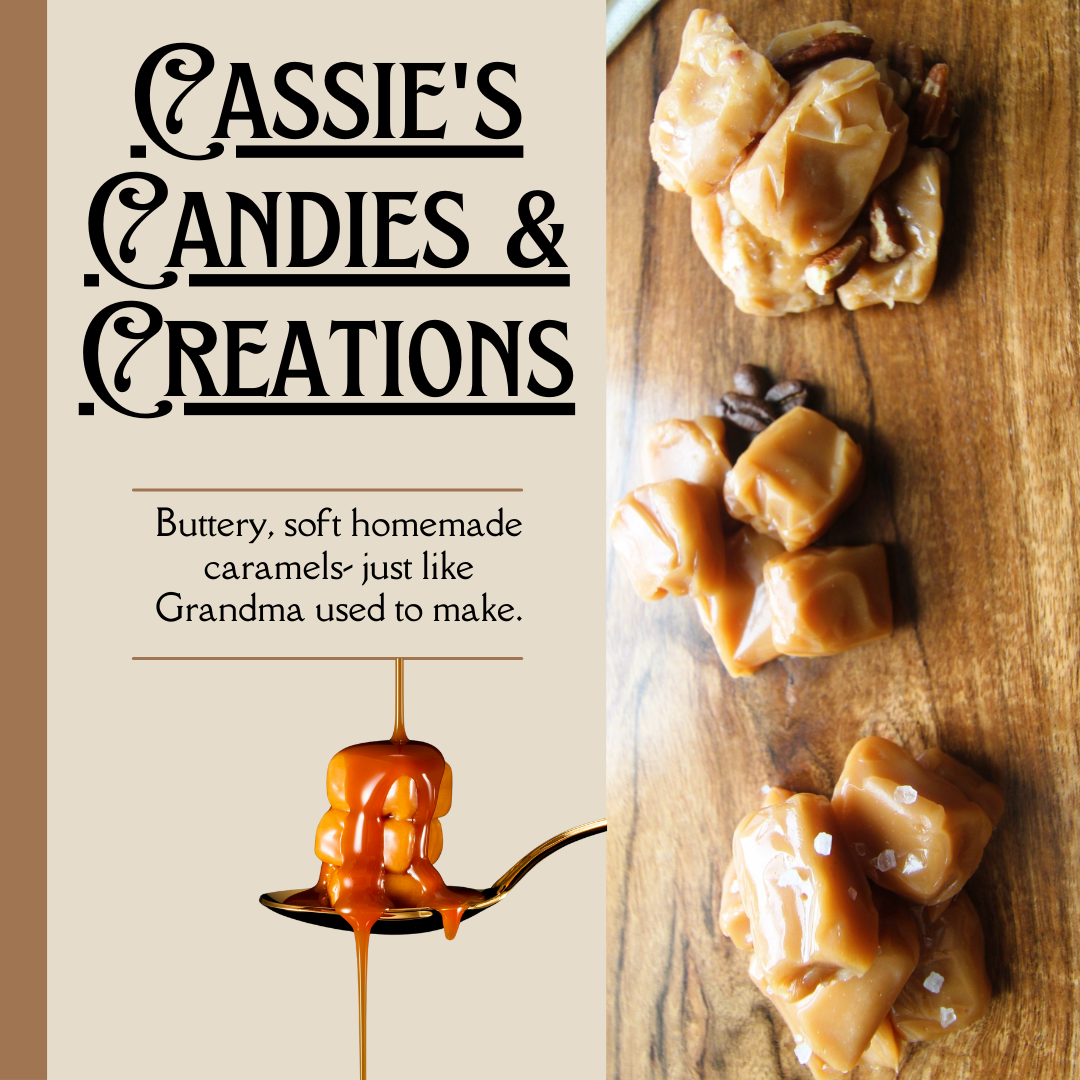 Kara Wolfe is a 3rd generation candymaker and owner of Cassie's Candies & Creations. Cassie's Candies & Creations offers a delightful range of old-fashioned homemade candies, including buttery soft caramels, continuing a family legacy of candy making. From original to bourbon to salted to spicy flavors and many more, these homemade treats, along with other sweet creations, such as brittles, hardtack, cake truffles, and more promise to create memories with a nostalgic taste experience.