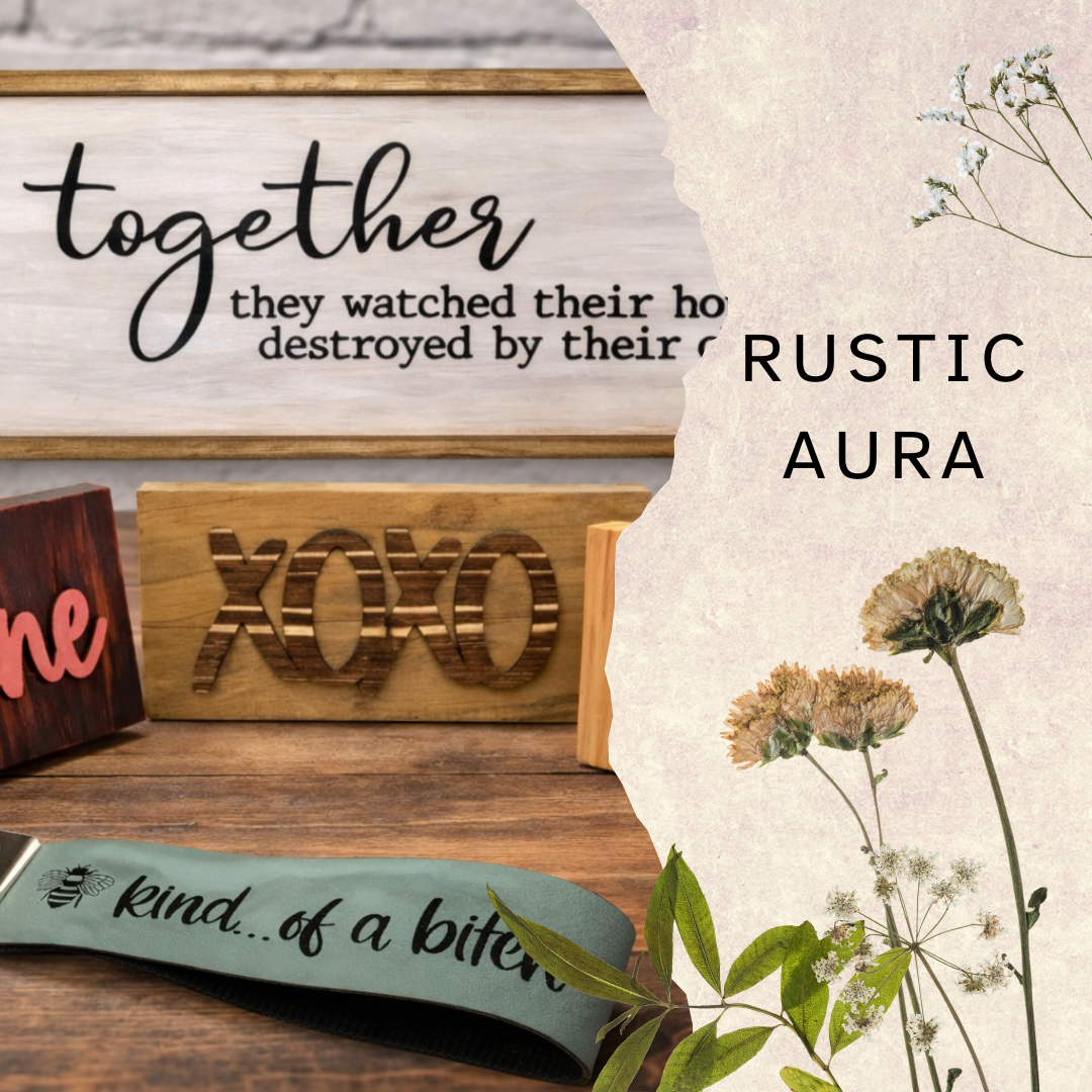 I’m Kim, the maker behind Rustic Aura Designs. I laser engrave and cut rustic-style wood signs and décor with a little bit of everything else sprinkled in. From ready-made designs to fully custom creations, I love turning your ideas into pieces you’ll be proud to hang, gift, or show off. Rustic Aura isn’t just about décor—it’s about capturing little moments, big feelings, and everyday joy in a way that feels warm and timeless.
